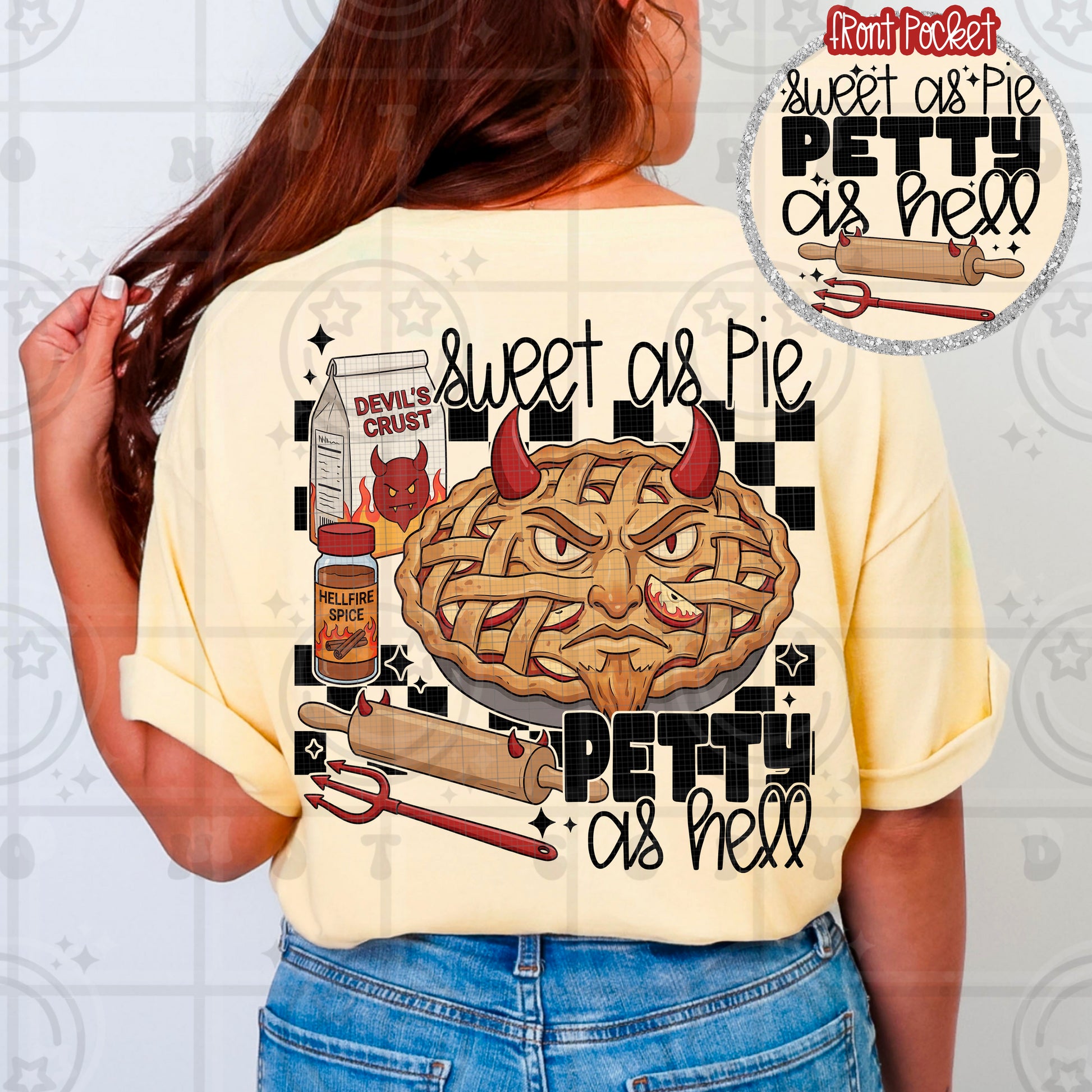 Front pocket & back design DTF transfer.
